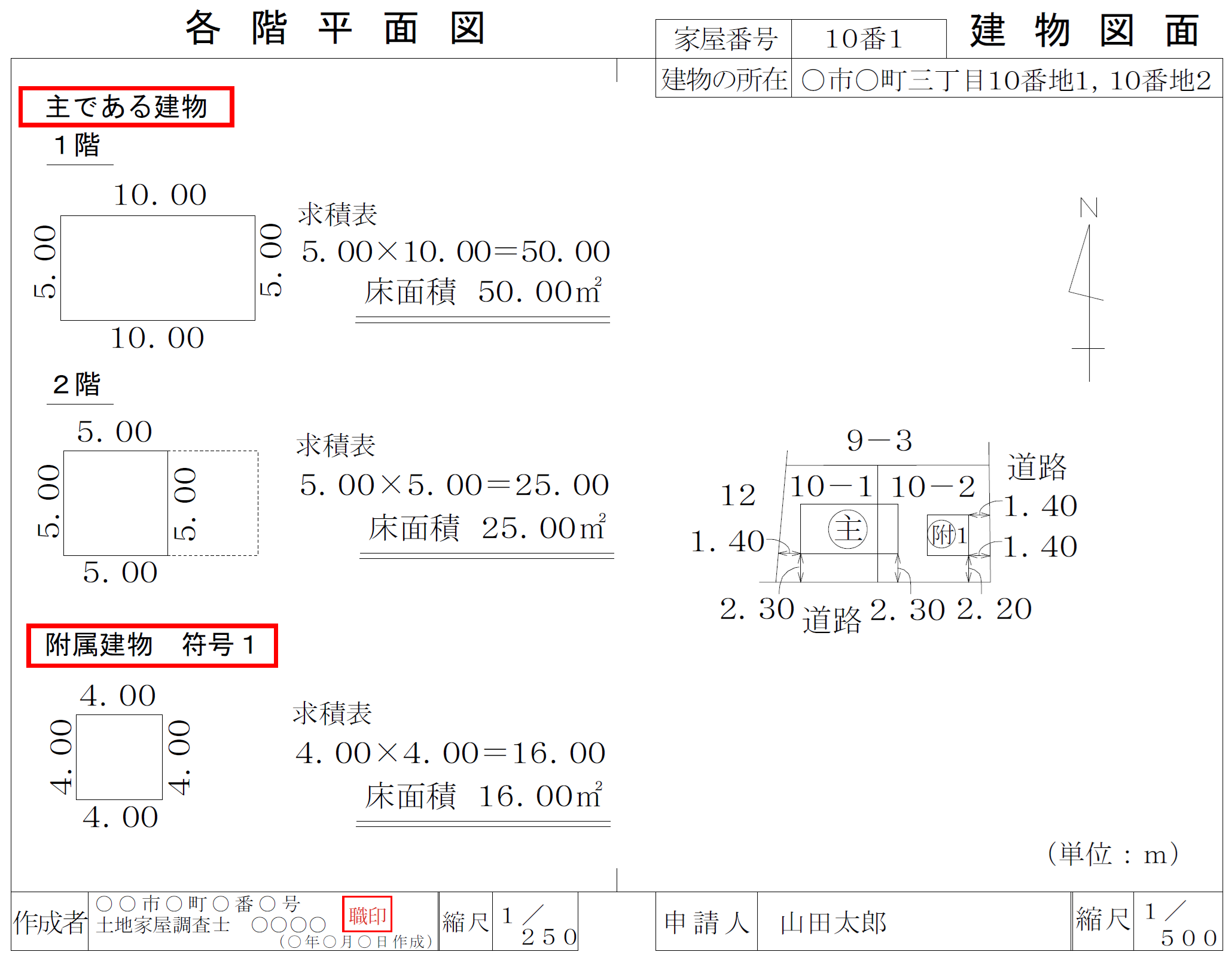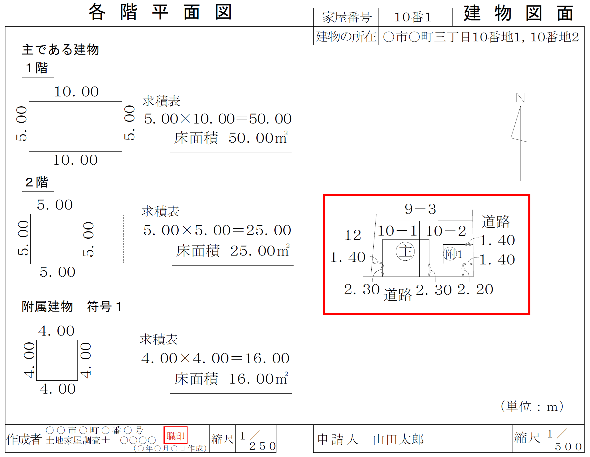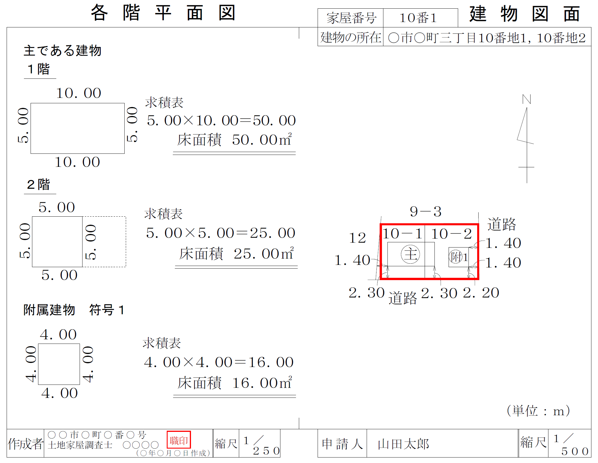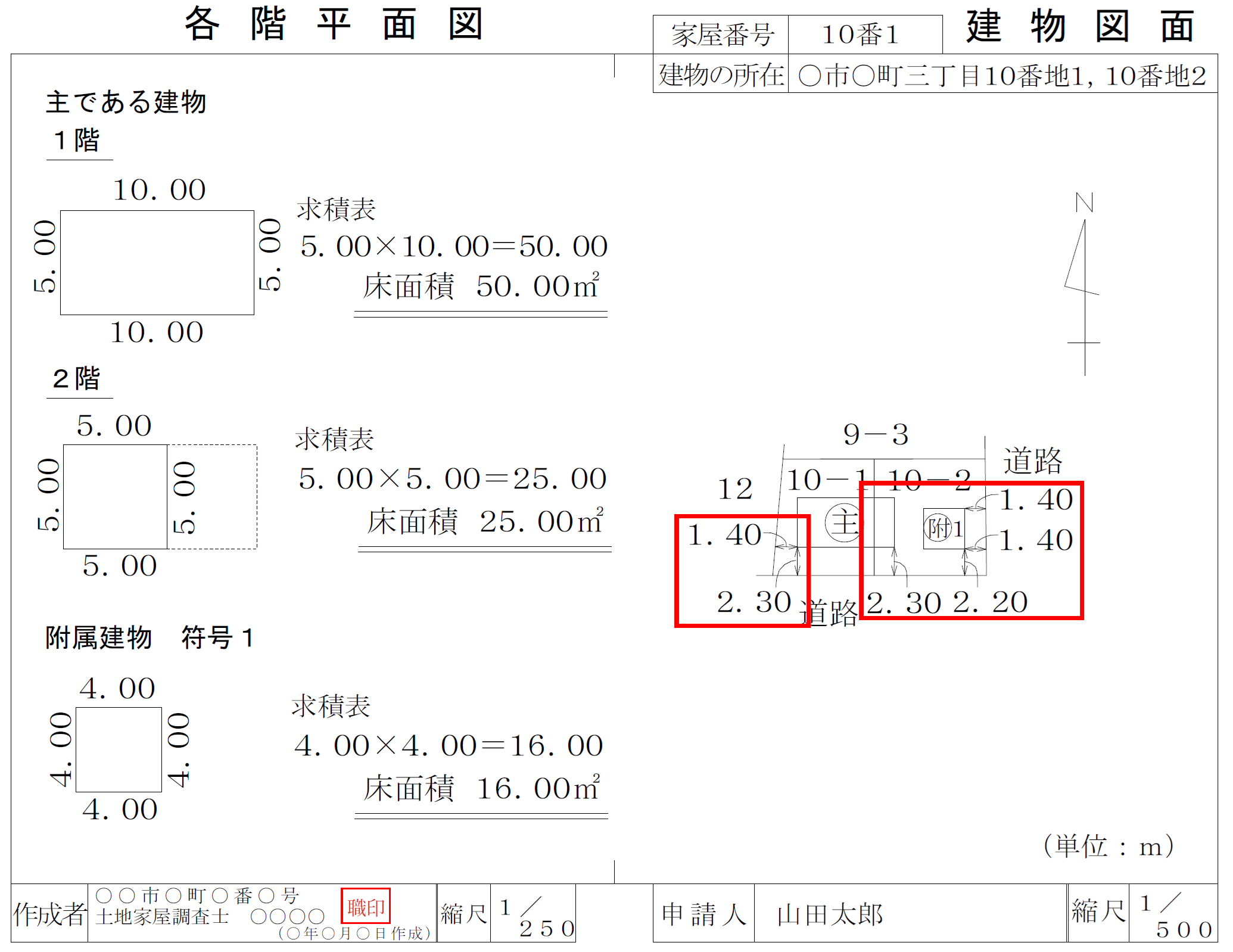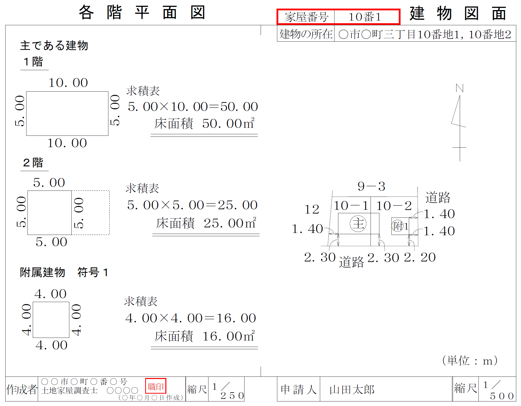 上図2の建物で言えば、主である建物が10番地1に建っており、