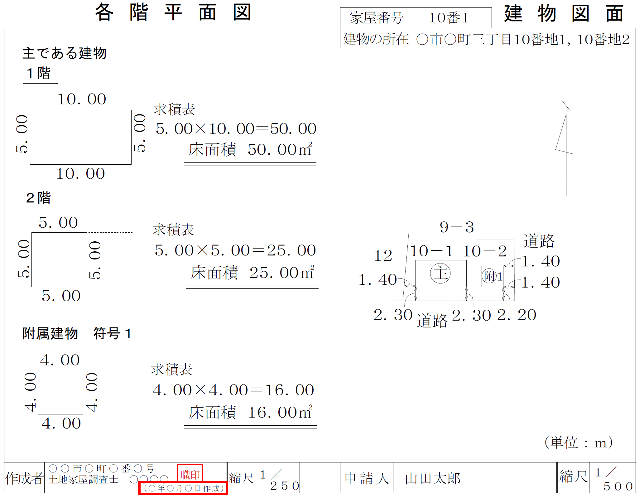 土地家屋調査士の住所と氏名が記載されていることが多いです。